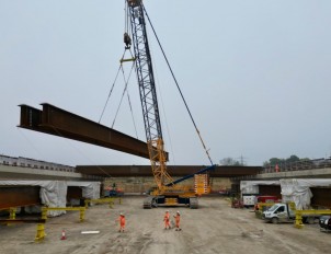 The bridge is a composite structure, featuring a concrete deck cast over steel girders with glass-reinforced plastic panels used as permanent formwork. This design not only ensures durability but also contributes to a more efficient construction process. To support the bridge’s substantial weight, a 9,000m² platform was prepared, and 62 piles were constructed to support the concrete structures. In total, approximately 4,000m³ of concrete and 490 tonnes of reinforced steel were used in the construction.