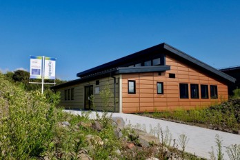 · An aquifer thermal energy storage system (with two 129m deep wells) allows thermal energy differentials to be stored deep underground, providing all of the energy required for heating and cooling. A heat-pump was also applied to this storage system to increase efficiency.