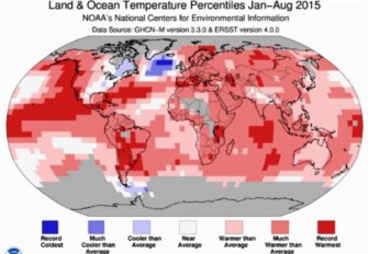 Global average temperature in 2015 was the hottest since record-keeping began in 1880, as revealed by separate analyses of NASA - the National Aeronautics and Space Administration and NOAA - the National Oceanic and Atmospheric Administration. An increase of +0.13C (+0.23F) in the global average temperature was observed, breaking the record which was only set in 2014. ‘It is not uncommon to have two years in a row of record-breaking temperatures. But if 2016 turns out to be as warm as scientists anticipate, that would be unprecedented as we have never had three years in a row’, says Gavin Schmidt, director of NASA's Goddard Institute for Space Studies.