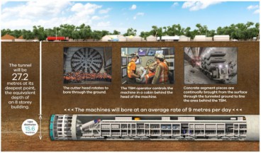 Civil engineering projects of this magnitude rely heavily on advanced technology and precise engineering. Rexy and Renny, each weighing 750 tonnes and stretching 131 meters long, are prime examples of the sophisticated machinery used in modern tunneling operations. These TBMs meticulously excavated through dense urban areas, ensuring minimal disruption to the surface and existing structures. Over their operational period, they excavated approximately 1.2 million tonnes of soil and rock, demonstrating the sheer scale and power of these machines.
