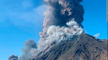 Stromboli volcano, located in southern Italy, has erupted for the 2nd time in 2 months. Three activ...