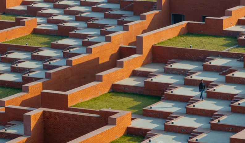 A major university construction project in Indore, is drawing international attention for its unconventional rooftop design and climate-responsive engineering. The five-storey academic building features a 97,000 square metre stepped roof that functions as an open-air auditorium capable of hosting approximately 9,000 people.
