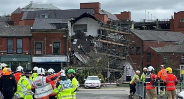 A partially scaffolded terraced building on King Street in Oldham collapsed on March 24, 2026, trig...