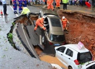 On May 22nd, a sinkhole appeared near a busy intersection in Ruijin, a city in the Jiangxi privince...