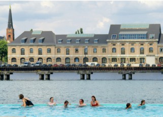 A harbored barge has been transformed into a floating swimming pool and a whole recreation area has...