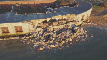 An intense storm caused a wall collapse in iconic Hurst Castle, England. The Hurst Castle is loca...