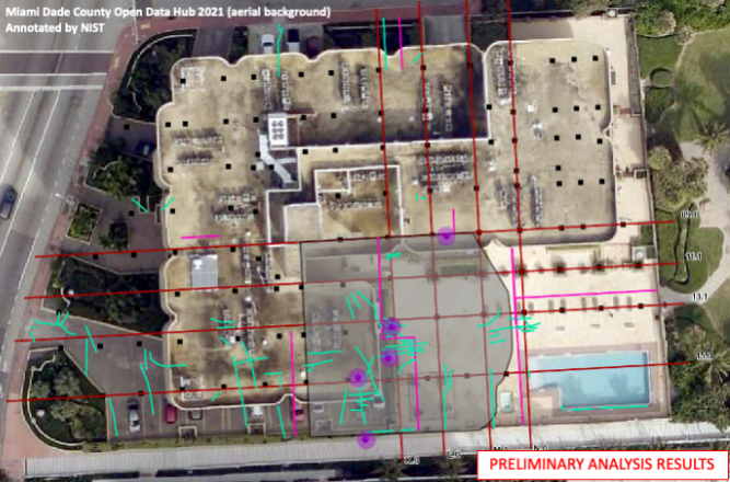 Federal investigators report that the 2021 partial collapse of Champlain Towers South in Surfside likely initiated in the pool deck rather than the tower superstructure. Based on large-scale structural testing, computer analyses, and timeline reconstruction, the National Institute of Standards and Technology indicated that failure most likely began at a slab-to-column connection on the pool deck and then propagated into the middle and east portions of the tower. Indicators of localized distress were documented in the weeks before the event, including a sliding glass door that came off its frame, a horizontal crack in a planter wall, a shifted gate, and reports of water leaking from the garage ceiling that intensified the day prior. The pool and street-level decks began to fail at least several minutes before global collapse at 1:22 a.m. on June 24, 2021. The investigation remains active, with final determinations expected following completion of technical reports.