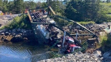 A steel truss bridge situated near Canso, a community in Guysborough County, Canada, collapsed...