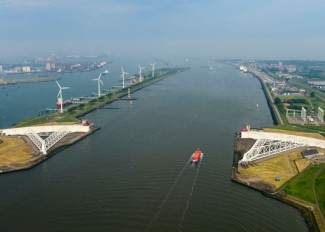 When the water level exceeds more than 3 m from the surface of the water, then the moving parts of the barrier are activated. The waterway with a width of 360m can then be completely closed. At first sight, it is almost unbelievable that such a barrier is capable of such an achievement. The Maeslant barrier has a length almost as the height of the Eiffel tower and weighs about four times as much. It is the only storm surge barrier in the world with such large movable parts. Each of the mobile ports has length equal to 240 m. Normally, the doors are fully open so that ships to access the harbor of Rotterdam. When the barrier is open, the doors are disposed along the two banks of the river.
