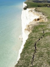 Thick cracks that emerged on the top of a cliff in South England indicate a potential cliff collapse in the future. The cliff is located in Beachy H Thick cracks that emerged on the top of a cliff in...