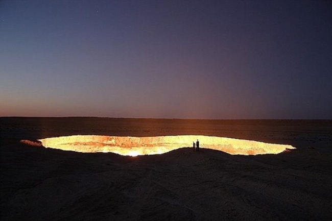 This so-called Derweze or "door to hell" is a giant crater in the desert Karakum, Turkmenistan, which was created by geologists studying the site 40 years ago... This so-called Derweze or "door to he...