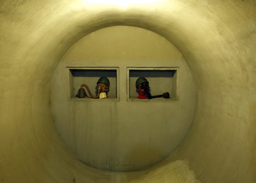 A narrow corridor, 60 meters long, with an entrance that is lost among the trees, a small wooden desk, masks, helmets, a black phone nailed to the wall and a small bed ... A narrow corridor, 60 meter...