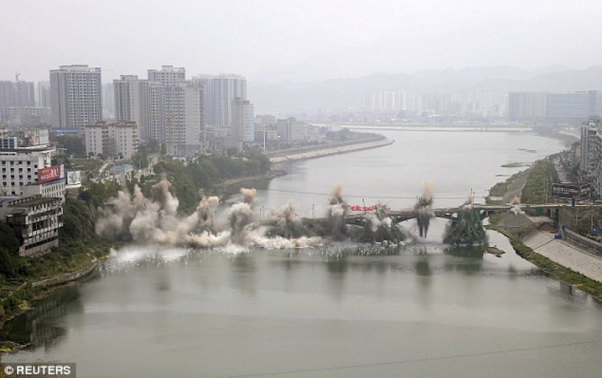 Three seconds were enough for a bridge with a height of 180 meters, in China, to be destroyed, after a controlled explosion. Three seconds were enough for a bridge with a height of 180 meters, in Chi...
