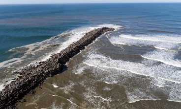 A topside shoring system is used to support precast concrete double-tee floor beams during construction activities at a waterfront facility. Source: Structures Magazine
