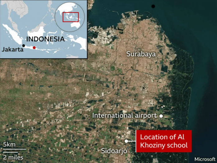 Rescue operations continue in East Java, Indonesia, after the collapse of the Al-Khoziny Islamic Boarding School in Sidoarjo left dozens of students trapped beneath the rubble. The incident occurred on Monday while hundreds of students were gathered for afternoon prayers. Officials confirmed that at least five people have died, with scores injured and many more unaccounted for. Families remain camped near the site, anxiously awaiting updates as emergency crews work around the clock.