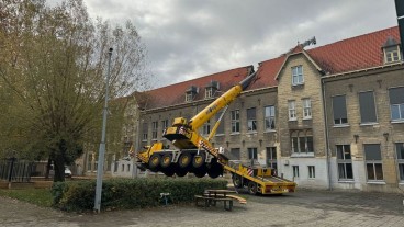 In Cadier en Keer, near Maastricht, a mobile crane toppled onto the roof of a youth care institutio...