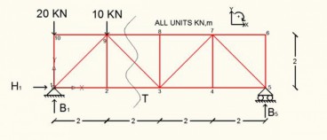 Find the axial forces of the members 2-3, 3-9 of the truss for the given external loads. Find the a...