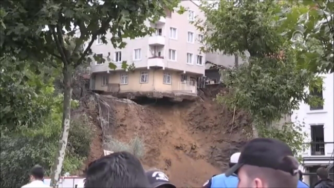 A retaining wall gave away causing a landslide and leaving a building hanging on a cliff before it finally collapsed in Istanbul's Beyoglu district. A retaining wall gave away causing a landslide and...