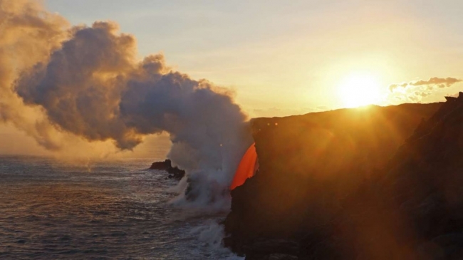 As an impressive stream of lava from Hawaii's Kilauea Volcano was steadily splashing into the Pacific Ocean for the past month, part of the sea cliff at the Kamokuna ocean entry on the south-east side...