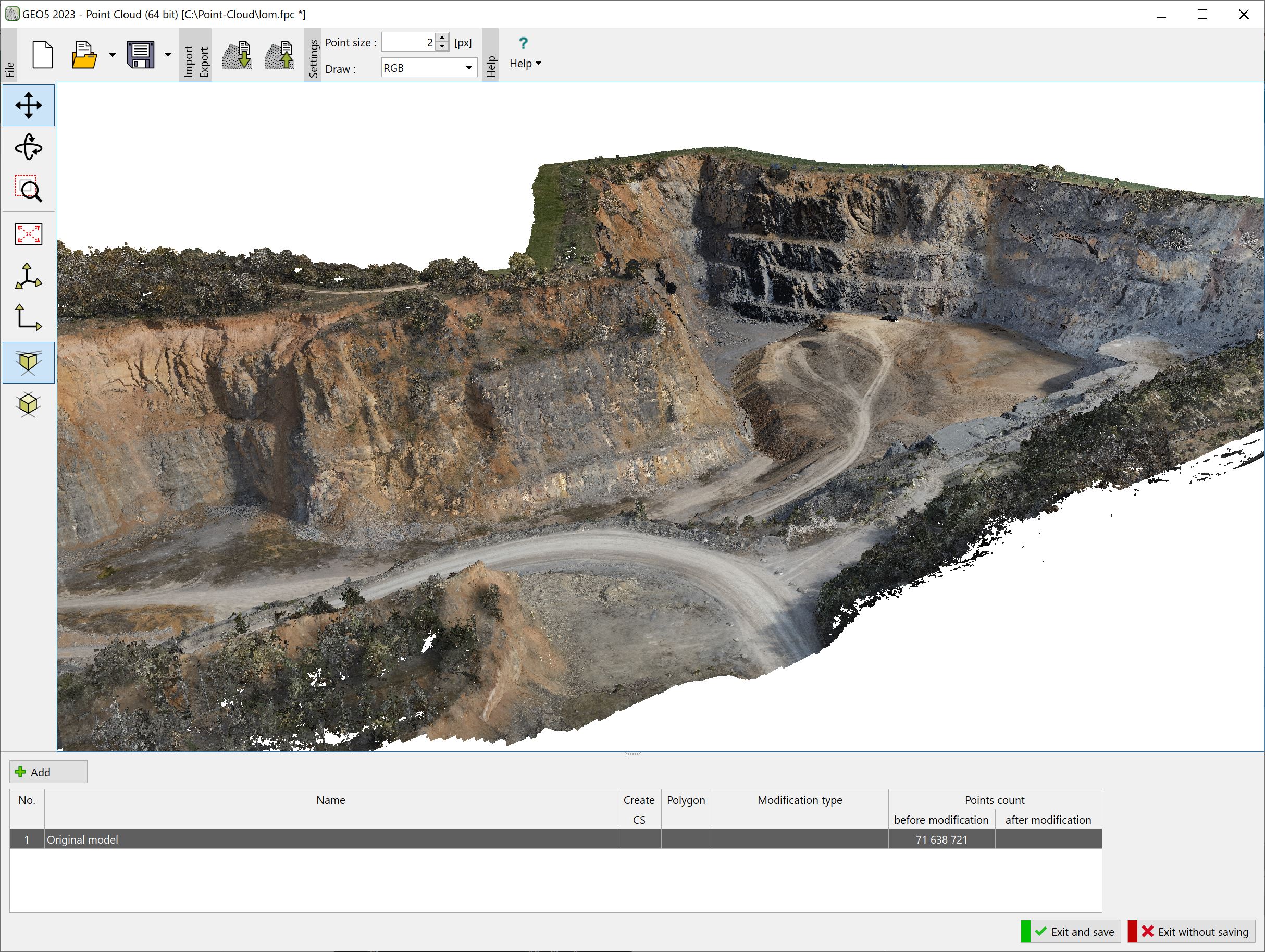The program allows fast processing of point clouds (up to 100 million points) and export of resulting points into the Stratigraphy program or external files.